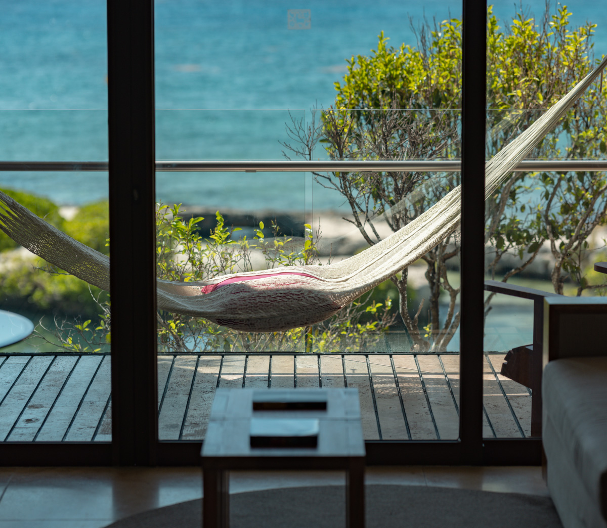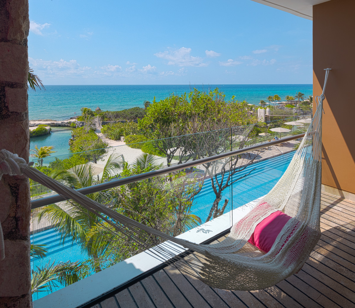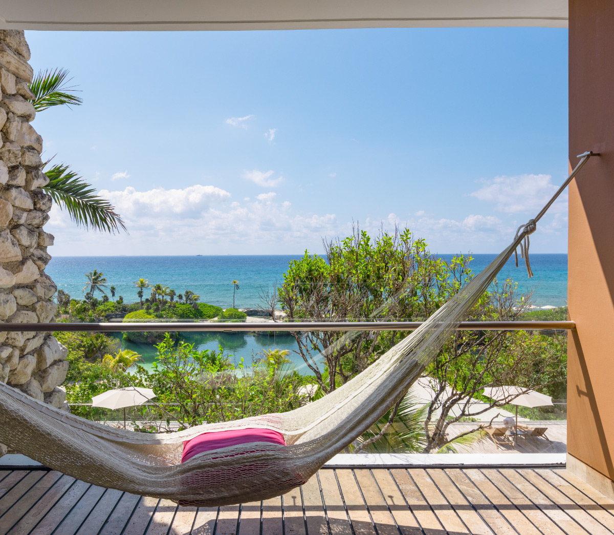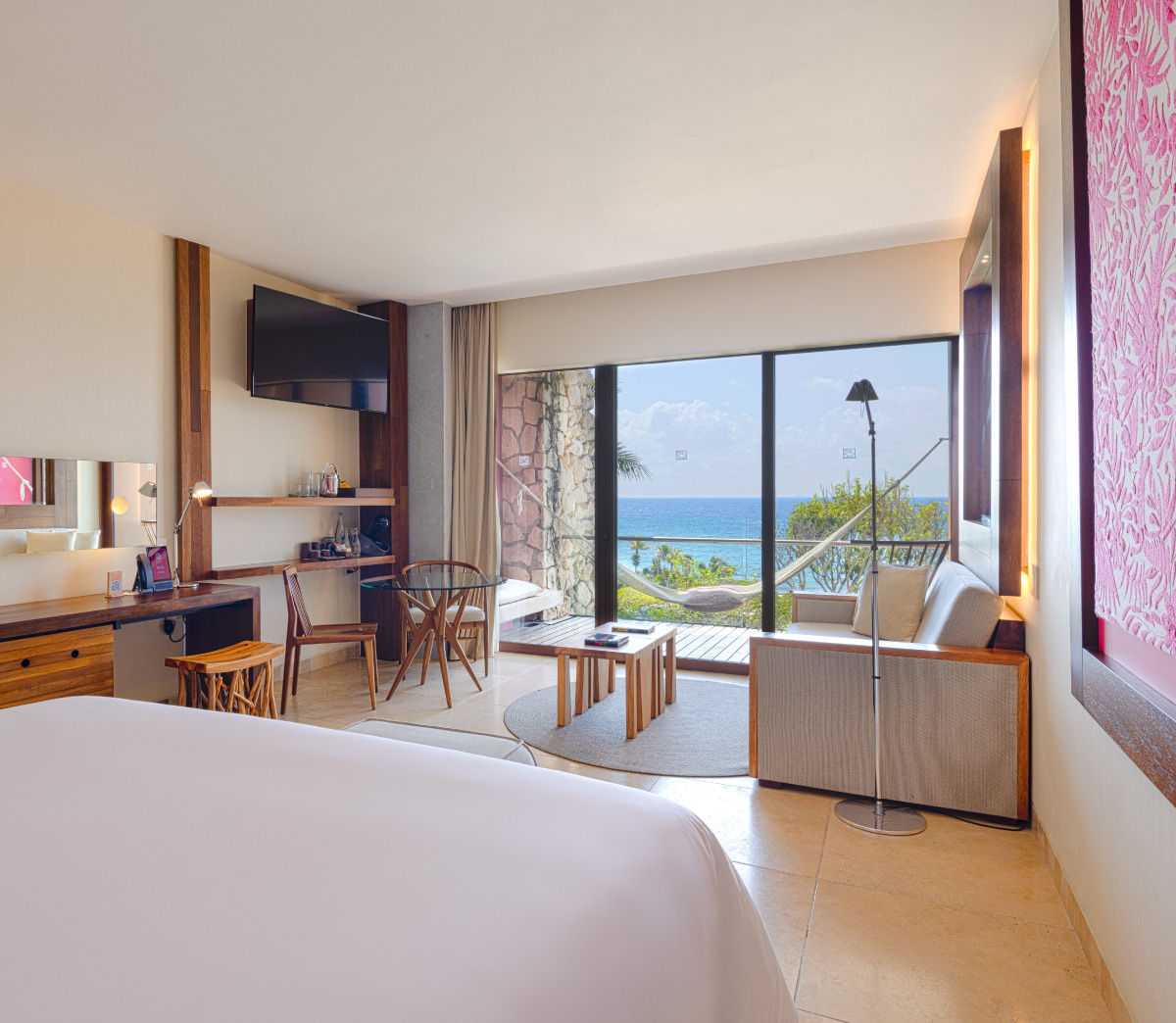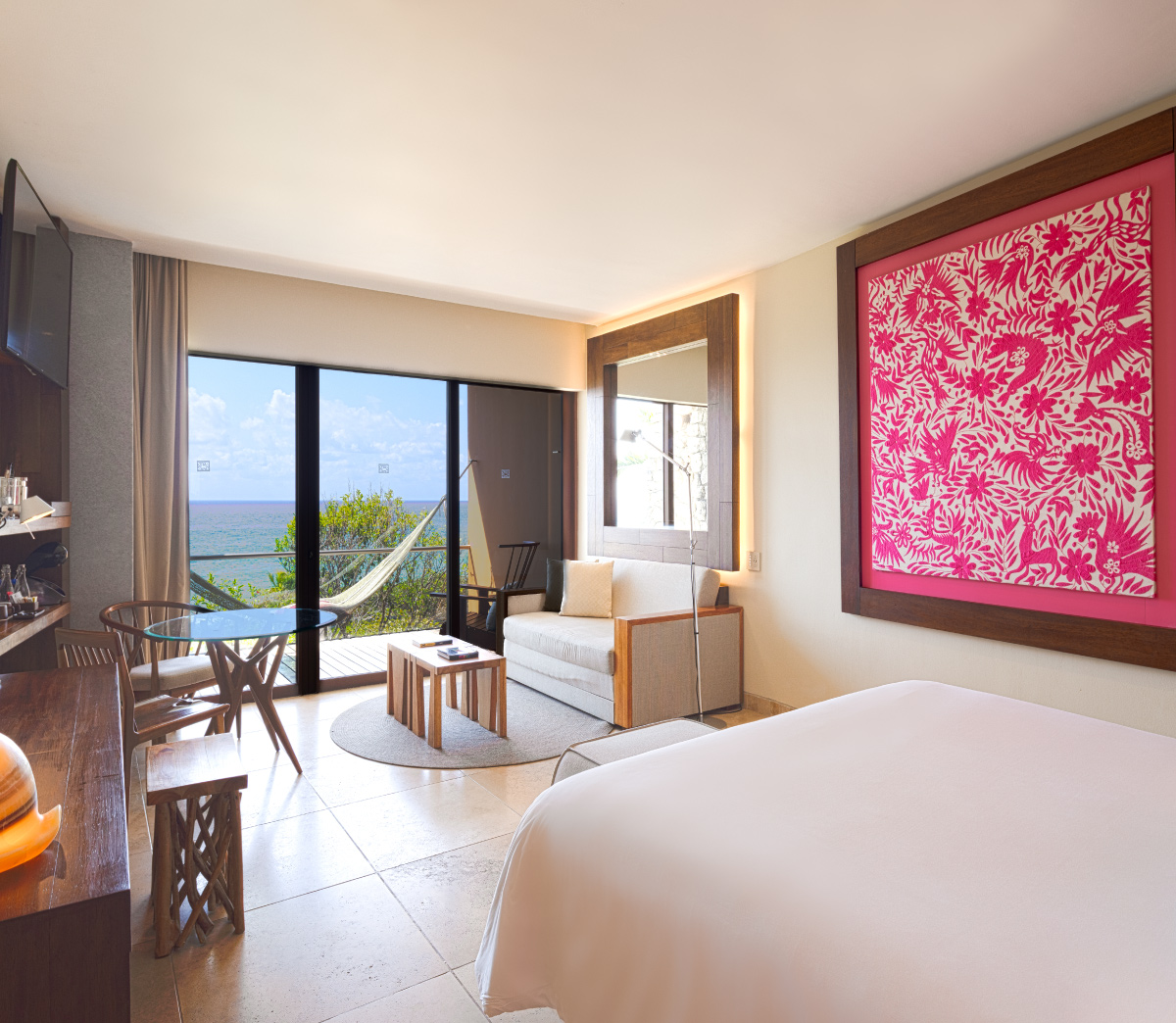 Una habitación desde la cual podrás observar el mar turquesa y la selva, un escenario natural que te acompañará a vivir unas vacaciones extraordinarias.
