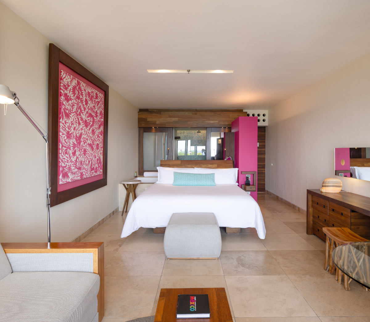 Sumérgete en la serenidad de esta suite con vistas a exuberantes jardines o la tranquilidad de los ríos que fluyen por la propiedad, donde los detalles artesanales que celebran la esencia de México y la comodidad se combinan en perfecta armonía. Hospédate en un espacio que te conecta con la naturaleza y disfruta el acceso a amenidades exclusivas como albercas familiares, rooftops y actividades para disfrutar en familia.